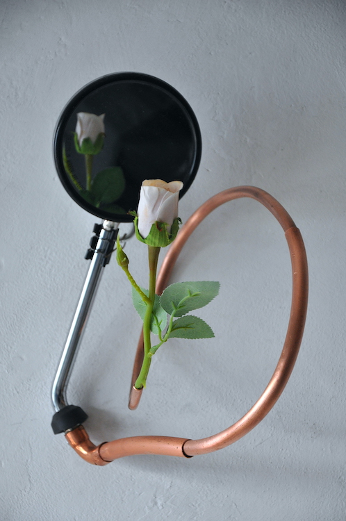 specchio, acciaio cromato, rame, plastica, accessori vari - cm 32x20x27